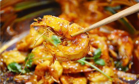 2. 红烧大虾:红烧大虾色泽红亮,味道鲜美。先将大虾洗净,放入锅中焯水去腥,捞出备用。锅中加入适量的油,放入葱姜蒜爆香,再加入料酒、生抽、老抽等调料,将大虾放入锅中翻炒,最后加入适量的水,小火慢炖,直至汤汁浓稠。